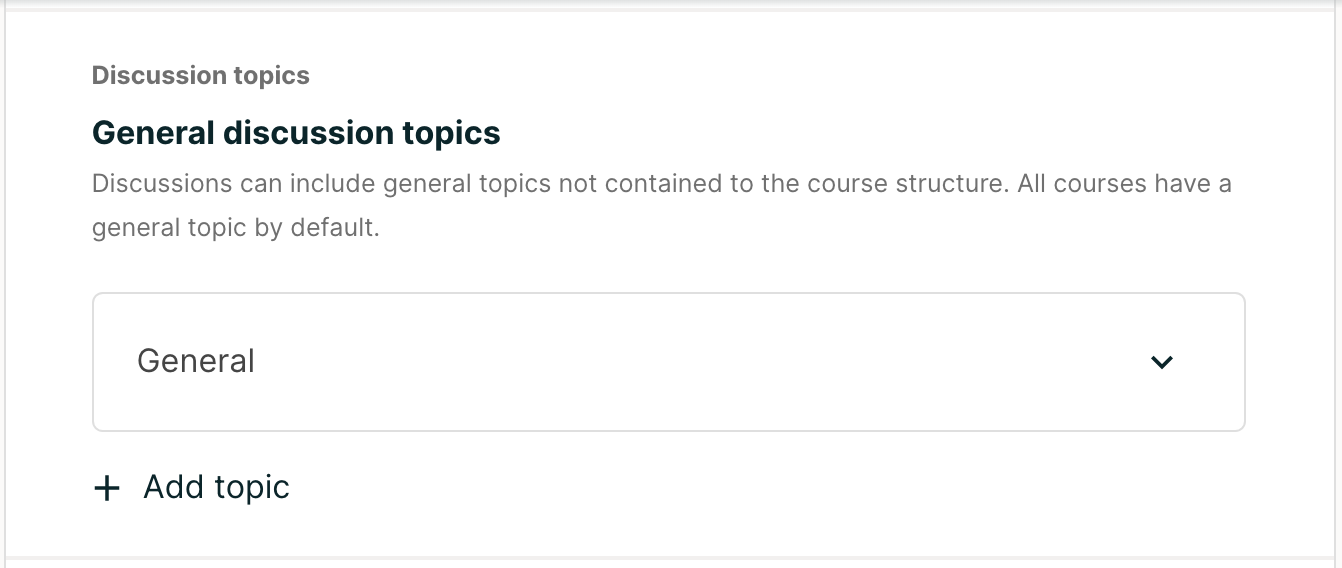 All courses include a page named Discussion. When you create a course, a course-wide discussion topic named “General” is already included by default.