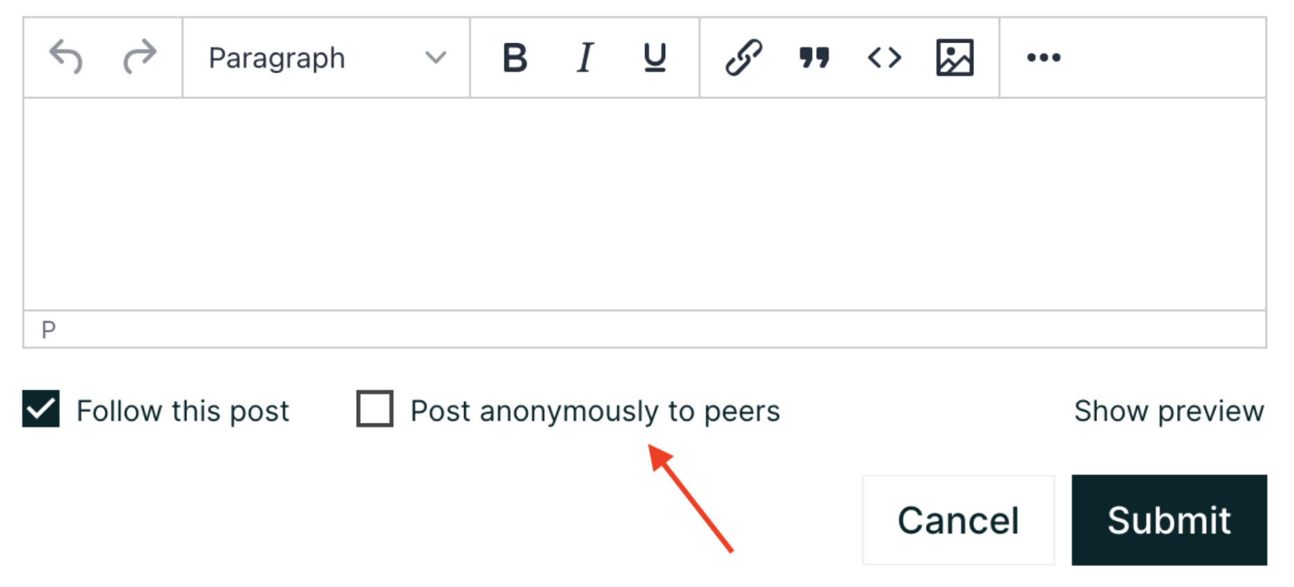 Once the toggle has been enabled, forum users will have the option to create posts that are anonymous to other learners, as seen below.